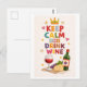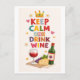 This is a postcard in the style of a paper cutout collage that says, "Keep calm and drink wine."