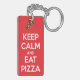 Keep Calm and Eat Pizza design featuring a cartoon pizza slice and bright red typography. Perfect for pizza lovers and foodies who love funny pizza quotes. Great for tees, posters or gifts.