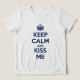 "Keep Calm and Kiss Me" slogan with royal crown. Romantic, flirty poster-style inspired by classic British prints. Ideal for Valentine's and romantic apparel.