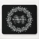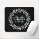 Blommigt Kalligrafi Typografi Monogram Mouse Pad in Black and White - Snyggt svart och vit monogrammad muspekad present till ett nyligen slätt par med anpassningsbar monogram, groom & bride namn, efternamn och bröllop datummallar omgivna av en fet blommigt konsthandling. En tankfull keepsaké för ett pars uppvärmning av party eller bröllopspresent. ©Swewhimsypaperie