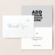 En fin "kärlek och tack"-design... framsida av kortet: ord 'Tack' i ett skrivteckensnitt för silver, insida: ditt speciella foto; insida baksida: anpassningsbar ord och namn; baksida; ett litet guld-foil-hjärta