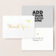 En fin "kärlek och tack"-design... framsida av kortet: ord 'Tack' i ett skrivteckensnitt för guld, insida: ditt speciella foto; insida: anpassningsbar ord; baksida; ett litet guld-foil-hjärta