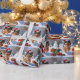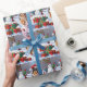 Keeshond Hund som springer i Snö med julklapp Presentpapper