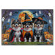 En lekfull Halloween-scen med en eländig liten valp som pissar ut en karvpumpare, omgiven av fallviber från scoky-roligt. Med kylig charm och hösten färg, är det perfektens beröring av humor för säsongen.