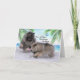Keeshondjulkort #2 - två förtjusande Keeshondvalpar som för 2018 samlarear leker behållan-bort med en julprydnad i sanden. Vid förfrågan. Konstnär Karen Evasuik.