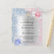 En modern, elegant baptism, som firar två spädbarn, en flicka och en pojke. Faux metallisk bakgrund i silver, dekorerad med blåa och rosa faux glitter, guldfärgade kor och rosa och blå blommigtar, blommor. Anpassa och lägg till namn och ceremonidetaljer. Svart färgad brev.