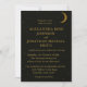 Inbjudan dina gäster med tidlös elegans med hjälp av den här känslolösa bröllopsinbjudan, med en svart stjärnbakgrund i himmel med skarpa accenter från guld. En strålande krescerande måne och en känslig konstellation ger information om ram i namn, datum och plats i grovt serif och script typsnitt. Perfekt för celestial bröllop, kvällsceremonier eller stjärnbelyst firande, ger den här utformningen modern lyx till ett klassiskt kosmtema. Fullständigt anpassade med dina detaljer och tryck på 350 DPI på premiumkardstock. Den här inbjudan parar perfekt med matchande Spara-the-Date-kort, OSA kort och tack-du-anteckningar.