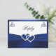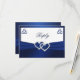 Detta marinblå och vita FAUX-plisserade UTSEENDE Keltiska kärleksknut-svarskort har ett UTTRYCKT band och FAUX-glimmer och diamantprydda hjärtan som matchar den nedan visade bröllopsinbjudan. Om du behöver andra matchande föremål, vänligen maila din förfrågan till niteowlstudio@gmail.com.