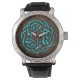 Keltisk knölblå på läderdigitalkonst armbandsur
