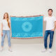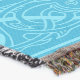 Gräns i den keltiska snubben arbetar med sammanflätad fiskdesign i blå nyanser, med en stor cirkelformad fiskmedallion i mitten