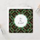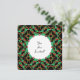 Denna lättpersonliga julfestinbjudan är dekorerad med ett mönster av sammanflätade bandliknande former inspirerade av keltisk knutkonst tillsammans med julkransar av järnekslöv och bär i traditionell röd och grön färg med guldfärgade accenter.