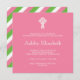 Rosa och gröna ränder bekräftelse, första kommunion eller dop, bautizo bautismo inbjudan. Perfekt för att tillkännage din lilla flickas speciella dag. Om du älskar denna design och önskar köpa matchande kort, besök min butik på www.zazzle.com/vginvites