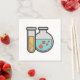 Pappra blöjor med en söt illustration av ett provrör som håller gult vätska och en rundad kolv/bägare som håller grönt vätska med röda bubblor.