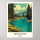 Experience the renowned Kenai River with this inviting vintage travel design from Alaska. Depicting a fisherman in a serene river surrounded by lush forest and mountains, perfect for anglers and outdoor adventurers.