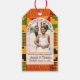 This elegant modern arch photo Wedding Thank You Gift Tags—with African Ghanaian Kente cloth in the background—is designed to thank your guests for attending your special cultural wedding day.