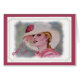 En guillersk Dam i sin klassiska vita Derby Hat med en Silver Organza Band med en underbar röd ros! Ett hälsningskort som inget annat.. Firar födelsedagar, bröllop, duschar, studenten, flickvänner, ålder osv. Ett uttryck för din tanklöshet och omtänksamhet. Upplev vänskap och uppmuntran.GA