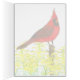 Ett tomt hälsningskort som dekoreras med en skarp röd kardinalfågel på ett stängselställe i ett goldenrodplåster av pulserande gult som är ritat med bläck och färgat med vattenfärg. Inspinerad av den statliga fågeln och statsblomman Kentucky. Du kan redigera eller ta bort texten efter behov.