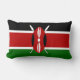 Lumbar dekorativ kudde med flagga från Republiken Kenya med svart, vitt, rött och grönt rand med emblem bestående av två vita spjut och traditionell Maasai-sköld