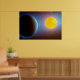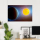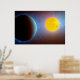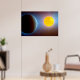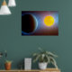 Den här artistens föreställning skildrar Kepler-10-stjärnsystemet, som ligger cirka 560 ljusår nära Cygnus- och Lyra-konstellationerna. Kepler har upptäckt två planeter runt den här stjärnan. Kepler-10b är till dags dato den minsta kända, bergiga exoplaneten, eller planeten utanför vårt solsystem (mörk spot mot gult sol). Kepler-10c är det större förgrundsobjektet.
