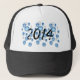 Fira det nya året 2021! Grafisk representation av blå och vita, tredimensionella bubblor i varierande storlek, flyter framför året. Anpassa året till det aktuella året (eller valfritt år).