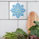 Denna 6-tums dekorativa ruta har en skarp ljusblå medallion/mandola på vit bakgrund. Det här kommer att vara vackert i ditt köks ryggsplash eller i badrumsmönstret. Glöm inte att titta på de andra plattorna i den här samlingen. Från Oregon Tile Maker Fay Jones Day.