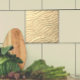 Dekorativ keramisk platta ser ut som flytande vatten. Färg är ljussand eller koner. Använda det för badrummet eller köket. Konstruktion av Oregon-plattmakaren Fay Jones Day