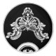 Presenterar ett gotiskt titelradklippningbiet med den lockiga lövrullan. Gjort i svartvitt