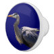 Denna keramiska dörrknopp presenterar den underbara blåttheronen (Ardeaherodias). Hans älskvärda blått, grått, svartvita fjädrar backlits i solen.
