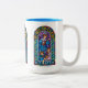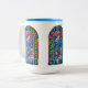 Fred på muggen för julafton för jordPre-Raphaelitestil den keramiska/för nytt år. Presentera ritar färgade llustrations i vattenfärg och, av en målat glassdesign efter Burne Jones.