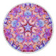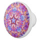 Denna ovanliga keramiska enhetsknopp, har en kaleidoscope att cirkla design med en stjärna i centrera som omges av fem som tulpan formar. Färger är ljust - slösa, mörk - rött, lavendel, ett handlag av gult, rosor och vit.