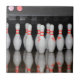 En keramisk bricka med ett foto av ett bowlingrack stift.