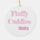 Fluffy Cuddles-formgivning tryckt på en keramisk prydnadsprodukt. Utformningen skapades 2023.