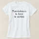 Den här klassiska t-shirten innehåller det inspirerande budskapet: "Icke-våld är kärlek i handling".