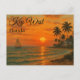 Key West, Florida at sunset retro travel tourism postcard with palm trees and a sail boat. You can personalize the text with this template.