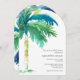 Celebrate the beauty of a tropical bridal shower in Florida with these bridal shower invitations, designed in a modern arch design and featuring hand-painted watercolor palm tree artwork in soft shades of blue, turquoise, and green. Inspired by the vibrant charm of Key West, this suite blends relaxed island style with contemporary elegance, making it perfect for tropical celebrations.