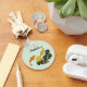 Koi swimming above lily pad. Orange and yellow fish among green leaves with a yellow flower. Background in very pale green. From original silk painting by Susan Lilly. (Lilikai)
