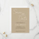 Enkla bröllopsinbjudningar med text "Save the date" med stiliserad vit text på en trendig khakifärgad bakgrund. Redigera och ersätt namn, datum och plats med dina egna. Välj storlek på inbjudan och pappersstil.