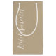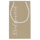 Presentera era dina bröllop-brudgåvor med den här lilla presentväskan som matchar din bröllopsfest färg-plan från ett trendig Khaki färg tillsammans med ett vitt, stiliserat skript som lyder "Bridesmaid". Finns i många populära program i bröllop färg.