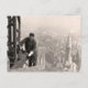 En vintage fotograferar av ett gamal manarbete på en skyscraper.