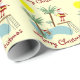 En roligt och en nyckfull design till sjalen dina helgdaggåvor till familjen och vänner. Santa på kickdykningen stiger ombord med renen i bassängen och en fågelbad som är närliggande under palmträden.