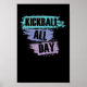 Elegantes Motiv zum Thema Kickball. Zugehörige Begriffe sind Sport, Gummiball und Amerika. Tolle Grafik für Freunde der Ballsportart mit dem Titel: Kickball hela dagen Gummiball USA Sport. Der Sport Kickball ist i Kanada Fußball-Baseball und im Vereinigten Königreich als Football Rounders bekannt. Das Spiel, welches dem Baseball von den Regeln ähnelt, wird einem weichen Gummiball mit dem Fuß gespielt.
