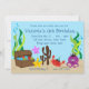 Det här söta anpassadet bassäng födelsedagsfest inbjudan har en scen under havet med en fullt av gåvor, en bläckfisk och en krabba med party och en stjärnfisk med ballong.