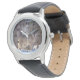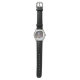 Kids classic black leather strap watch shown with a wildlife wolf photo print.