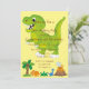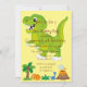 Kids Dinosaur Theme Födelsedagsfest inbjudan Den här roligten har en stor grönt t-rex-dinosaur med lätt gult som bakgrund. Låt den här inbjudan hjälpa dig att ange temat för ditt barns kommande födelsedag. Om du vill ha mer anpassningsbar kan du skicka e-post till reviva.designs@gmail.com