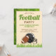 Inbjudan med gästerna i coolan, med födelsedagsfest inbjudan, med en amerikansk fotboll och en idrottshjälm med modern typografi mot en beige bakgrund. Lägg bara till din händelseinformation i den här mallen som är enkel att använda för att göra den till en inbjudan av typen en. Vänd över kortet för att visa en vacker grönt gräs struktur på baksidan av kortet.