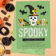 Få redo för en skrämmande roligt firande med den här söta Halloween-festinbjudan! Den här designen har en vit häxhatt, skalle, fladdermus och godis på en ljus grönt bakgrund och är perfekt för en barnvänlig spooky-bash. Roligt, lekfull och öga-fångst, det anger perfektens ton för trick eller behandlare och partygorer i alla åldrar. Anpassa med dina party-detaljer och låt hemsökningen börja!