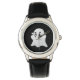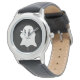 Den här barnklockan visas i rostfritt stål med ett svart läderband av ansikte och svart läder med ett Halloween-spöktryck. Anpassa den här klockan eller köp som det är.