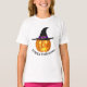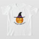 Den här barnens t-shirt visas i vitt med en Happy halloween-pumputskrift. Anpassa skjortan eller köpa som den är. lagrar-bild freepik.com