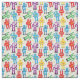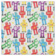 Färgbelagd väv av barn täckt med rött, blått, lila, gult och grönt, robotar av leksak och utomjordingar på vita