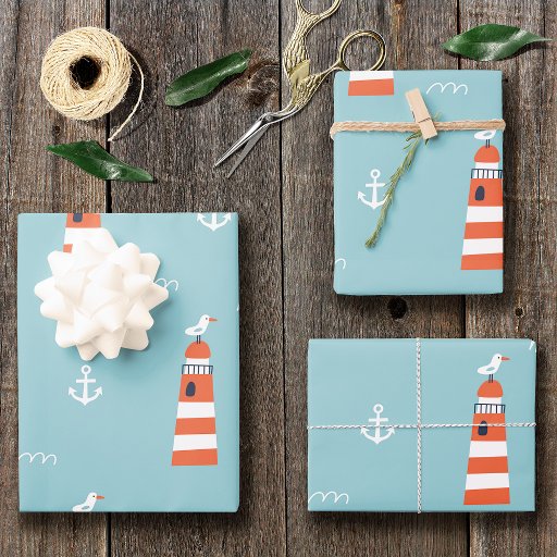 Kids Lighthouse och Anchor Mönster på Blue Presentpapper